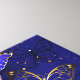 Composition of luxurious sapphire and gold jewellery butterflies on blue textured background.