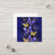 Composition of luxurious sapphire and gold jewellery butterflies on blue textured background.
