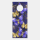 Composition of luxurious sapphire and gold jewellery butterflies on blue textured background.