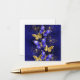 Composition of luxurious sapphire and gold jewellery butterflies on blue textured background.