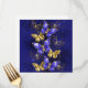 Composition of luxurious sapphire and gold jewellery butterflies on blue textured background.