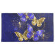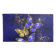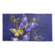 Composition of luxurious sapphire and gold jewellery butterflies on blue textured background.