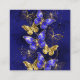 Composition of luxurious sapphire and gold jewellery butterflies on blue textured background.