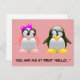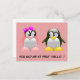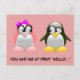 Computer Geek Valentine: Programming Language Love Postcard Two cartoon penguins, one pink and one black, holding hands bonding over the basics of computer programming