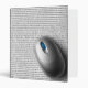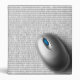A computer mouse on a pad with upside down binary code