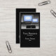 An original graphic design of a computer screen, laptop, tool box, and hand tools by artist/designer Charmaine Paulson on a computer repair service business card. The card has templates for your personalization.