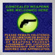 Here's a funny pro-Second Amendment poster for you: Concealed Weapons Are Welcomed Here. If circumstances should necessitate the drawing of weapons prudent judgement and judicious marksmanship are greatly appreciated.