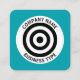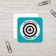 A business card template with a target like symbol made up of concentric circles. The symbol is placed in a white circle with curved text company name and business type with other contact details on the other side. Ready to be customized, suitable for a variety of businesses/uses.