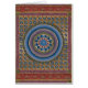 Abstract geometric design featuring detail from medieval Armenian illuminated manuscript in gold, red, purple and blue