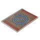 Abstract geometric design featuring detail from medieval Armenian illuminated manuscript in gold, red, purple and blue