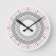 A clock face with a concentric circles design, in which rays are arranged to mark the minutes and hours in the outer circle, and used for decorative effect in the inner circles, the first inner ring having a tighter angular distribution of lines. However the second inner ring has the usual minute spaces. All the rays line up correctly and the hours are marked with a bolder red line in the outer circle providing both a decorative and practical clock face.