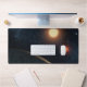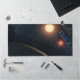 Concept de l'artiste illustrant Kepler-16b, la première planète circumbinaire directement détectée, qui est une planète qui orbite deux étoiles. Les deux étoiles en orbite s'éclipsent régulièrement, comme on le voit de notre point de vue sur la Terre. La planète éclipse, ou transite, chaque étoile. Les éclipses stellaires sont montrées ici, ainsi que les transits de la planète à travers les deux étoiles.