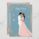 conception de carte de mariage, simple et élégant, nom du couple est "MEGHA & NEELANSH", couleur bleu pâle ou rose pâle