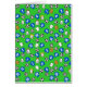 Un motif de visages de supporters de football, de chemises de football avec des numéros, et de balles de foot dessinées dans un style de dessin animé. Carte à notes qui montre un design coloré reflétant le club de football que vous supportez. Les chemises sont en bleu