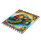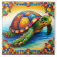 Une magnifique mosaïque d'art présente une tortue de mer aux couleurs vives glissant gracieusement à travers un océan bleu riche. Les motifs complexes sur la coquille de la tortue reflètent les teintes vibrantes d'un paradis tropical, célébrant la vie marine et l'art.
