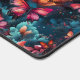 Ce tapis de bureau a un design papillon dessus.