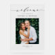 Ce panneau d'accueil mariage acrylique présente une calligraphie fantaisie et une typographie minimaliste, offrant une façon moderne et poli d'accueillir vos invités. Conçu pour faciliter la personnalisation, vous pouvez ajouter votre photo, vos noms et votre date de mariage pour créer une touche personnalisée. L'acrylique transparent ajoute une sensation contemporaine et élégante qui s'accorde bien avec une variété de styles mariages, y compris rustique, élégant et minimaliste. Affichez-le à l'entrée de votre cérémonie ou réception pour donner le ton de votre célébration. Durable et frappant visuellement, ce panneau est à la fois un élément décoratif et un souvenir durable.