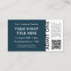 A simple concert or other event ticket template in a modern typographiy in a minimalist in simple black and white on a navy blue background. The template can easily be customized with your event details including date, time étrangère et ther custom ticket or event information (such and price, terms, arrival details and your event program). Donc, vous pouvez faire un easily upload your event QR code to the template for further information about the event from your own site web.