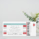 Customize this fun ticket and announce your wedding date in a bold and unique way! Tones of Bright Red and Light Aqua Blue with accents of Black. A mix of a digital fonts for a true concert ticket feel. Print additional travel, accommodation and/or RSVP details on the back.