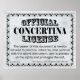 Official Concertina License. There are many activities involving various equipment, such as operating an automobile, airplane, etc., that require specialized training and licenses. Making music is something that usually requires training: lessons, practice, and rehearsals. Shouldn't it be required of the prospective musicians that they receive a license to operate the equipment, i.e., their musical instrument?