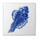 Ceramic tile in a vintage conch shell illustration, digitally coloured and enhanced, in deep indigo blue on a white background