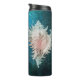 A delicately pink tinted conch shell so realistic you can almost hear the ocean, on a vibrant ocean blue background.