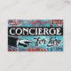 Colourful arty Concierge business cards in turquoise, aqua, red, yellow. Concierge for hire business cards.