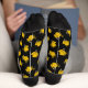 Mini concrete mixer with wheels. Seamless pattern. Custom background colour. Custom top stripe colour. Custom text on each sock.