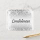 This condolence card has beautiful silver floral swirls set against a white background and the word "condolences" placed in the middle in a bold, embossed style font. BACK: The same design is carried across to the back and the following comforting words are written - "May; Friends comfort you; Faith uphold you Loving memories heal your heart. With sympathy", and below the verse is a text template for your or your families name. CUSTOMIZE IT: All text may be changed to suit your preference and the style, colour and size of font amended. The BACKGROUND COLOR, on both sides, may be changed to any colour of your choice. USE IT FOR: Sending your sympathies to friends, family and work colleagues who have suffered the loss of a loved one. Whether it be for a funeral, in memory of, sympathy, bereavement, memorial, remembrence or Veteran's day. COPYRIGHT: © Robin Wood - mensgifts