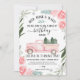 Superbe végétation, florale et flocons de neige avec un camion rose rempli d'arbres de noël.