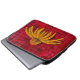 The sleeve is made of nice feeling material and seems very durable. I'm not sure how easy it'll be to clean, but the construction seems sound and the fabric is quick thick. I also like the double zipper. The printing is lovely and appears durable. The white on black contrast is nice, and the design very elegant.