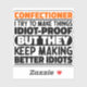 Funny Confectioner Sayings "Confectioner I Try To Make Things Idiot Proof But They Keep Making Better Idiots". Grab this Funny Confectioner design as a funny gifts for an awesome mom, dad or friend.