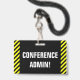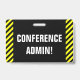 Cette conception de badge d'écumage comporte le message "CONFERENCE ADMIN!". Il présente également des bandes de prudence jaune et noir. Le verso comporte un nom d'événement personnalisable et une ou plusieurs dates d'événement. [~Z0000286]