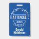 A badge for a Conference Attendee. Change the wording to your details. Conference Attendee badge. Official Attendee badge. White text on a blue background.