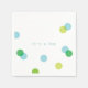 Ces serviettes en papier festif sont parsemées de points de confettis bleu aqua et vert sur un arrière - plan blanc avec bleu aqua "c'est un garçon" type modifiable. Parfait pour un bébé révéler douche.