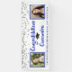 Silver glitter confetti and CONGRATULATIONS (graduate's name) in a brush script font in royal blue. Honour and celebrate the graduate and welcome party guests with this banner sign featuring two photos of the graduate. Personalize it with their name, school and graduation year or any text you desire. PHOTO TIP: For fastest/best results, choose a photo with the subject in the middle and/or pre-crop it to a square shape BEFORE uploading. Contact the designer via Zazzle Chat or makeitaboutyoustore@gmail.com if you would like this design modified, on another product or coordinating item.