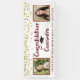 Celebrate your graduate's achievements with this banner sign featuring 2 square photos, faux gold metallic confetti and CONGRATULATIONS NAME in your choice of font style (shown in a brush calligraphy font in editable burgundy maroon. The burgundy/maroon text font and photo frames can be changed to a colour to coordinate with school colours or your graduation party colour theme. BANNER OPTIONS: The sample is shown in the 2.5x6' indoor style--other sizes and "outdoor" are available on the ordering page. ASSISTANCE: For help with design modification or personalization, colour change, resizing or transferring the design to another product, contact the designer BEFORE ORDERING via the Zazzle Chat MESSAGE tab below or email makeitaboutyoustore@gmail.com.