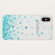 This stylish white Case-Mate Barely There iPhone X Case has a light to bright turquoise blue confetti pattern with a customizable name template for you to personalize if you wish, or you can delete the name if you prefer that.