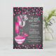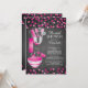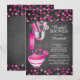 Stock moderne l'invitation de la cuisine nuptiale douche avec une épingle à rouler, mélange bol, spatule, pizza cutter, whisk, éplucheuse de légumes et cuillères de mesure ensemble sur un arrière - plan de tableau noir contemporain avec pois rose chaud et noir confetti. Visitez notre boutique pour voir cette invitation dans une variété d'invitations wedding showers populaires.
