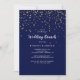 Ce confetti d'or | navy mariage brunch invitation est parfait pour un brunch mariage simple et classe. L'élégant design fantaisiste présente des confettis de parties scintillant d'or sur la marine, et la calligraphie minimaliste avec une atmosphère boho moderne.