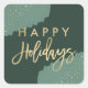 Célébrez les fêtes avec des stickers de vacances en confetti d'or moderne. Les autocollants de vacances élégants présentent une éclaboussure d'aquarelle vert clair avec un arrière - plan vert foncé, un faux confetti de feuille d'or, et une police de faux script de feuille d'or qui dit "Joyeuses fêtes". Les autocollants fonctionnent parfaitement comme des enveloppes, des faveurs de fête de vacances, et plus encore!