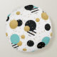 Confetti Dot Party Black Teal and Gold Circular Round Pillow