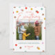 Modern custom printed holiday photo cards with a simple DIY template for customization. This fun minimalist design has a colourful confetti dot overlay with faux copper foil accents. Add your family photo, personal greeting, names and the year. Use the design tools to edit the fonts and colours. Reverse side has space to add more photos and text.