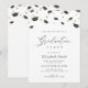 simple black and white design with elegant script and graduation cap confetti. The text and colors can be edited.