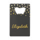 Cet ouvre-bouteille unique par carte de crédit est parfait pour vous. Doté d'un arrière - plan noir au design de confettis dorés. Customise ton nom. Confetti Clipart avec la permission de Sonya DeHart Design à : http://www.sonyadehartdesign.com |http://www.sonyadehartdesign.etsy.com