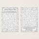 //Veuillez noter que les marqueurs de vos poinçons de trou ont été rendus ici en rouge pour leur permettre de mieux se montrer sur l'image arrière - plan. Vous pouvez supprimer ce calque ou modifier la couleur de votre choix. // Cette carte simple et amusante comporte des supports d'espace modèle pour ajouter vos coordonnées professionnelles à l'avant et à l'arrière. J'ai utilisé une jolie police de script pour votre nom de designer ou d'entreprise, et une police sans-serif propre pour tous les autres détails. L'arrière - plan de la carte était recouvert d'un graphique représentant des confettis noirs, ce qui permettait à la couleur arrière - plan blanche modifiable de passer à travers. Un rectangle à bordure noire chevauche ce graphique, ce qui permet de définir vos éléments de texte de manière élégante. N'hésitez pas à contacter si vous avez besoin d'aide customisée.
