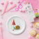 This Cute snail is ready to celebrate surrounded by confetti with a blowout in his mouth and wearing a festive party hat