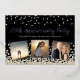 Elegant custom anniversary party invitation design featuring gold and silver confetti over a black background, modern script typography with the words "25th Anniversary Party", your name and anniversary date and three of your favourite photos framed in metallic silver foil. Personalize it with your party details on the back of the invitation.