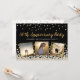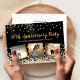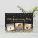 Elegant custom anniversary party invitation design featuring gold and silver confetti over a black background, modern script typography with the words "50th Anniversary Party" (in gold), your name and anniversary date (in silver) and three of your favourite photos framed in metallic gold foil. Personalize it with your party details on the back of the invitation.