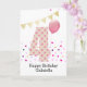 A colorful pink 4th birthday card for girls, which you can personalize with her name. The front of this colorful 4th birthday card for her features the number four in a pink polka dot with a pink balloon ready to float away.The background has some colorful confetti and a soft gold bunting banner at the top.The inside message can be easily personalized if you wanted.